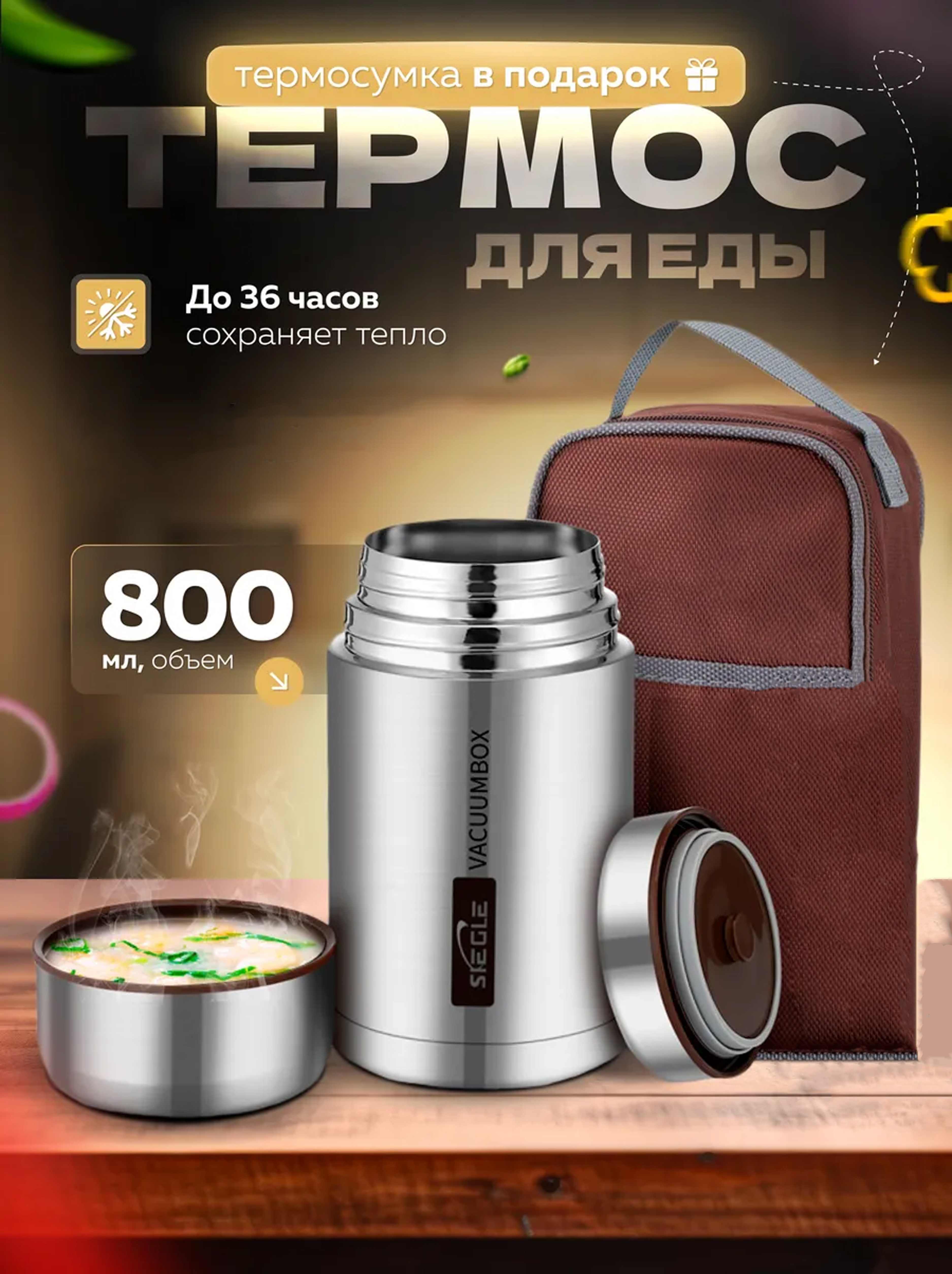 Чехол для термоса обеспечивает дополнительную защиту от ударов и царапин, что делает его идеальным для походов, пикников, дачных поездок и офисных обедов. Этот термос станет отличным подарком на день рождения, 23 февраля или любой другой праздник.