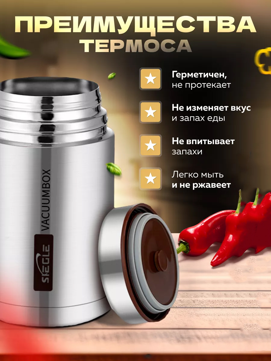 Термос обладает отличной термоизоляцией, что позволяет сохранить температуру пищи до нескольких часов. Вы больше не будете зависеть от местности, чтобы поесть горячий обед — просто возьмите с собой термос с едой и наслаждайтесь вкусом домашних блюд в любое время. Компактный и удобный, он станет вашим надежным спутником.