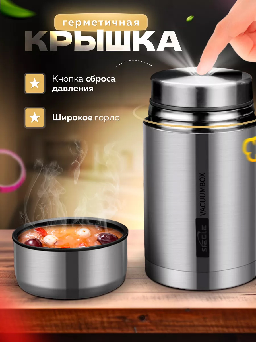 Термос обладает отличной термоизоляцией, что позволяет сохранить температуру пищи до нескольких часов. Вы больше не будете зависеть от местности, чтобы поесть горячий обед — просто возьмите с собой термос с едой и наслаждайтесь вкусом домашних блюд в любое время. Компактный и удобный, он станет вашим надежным спутником.